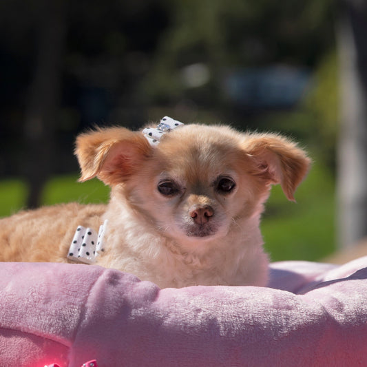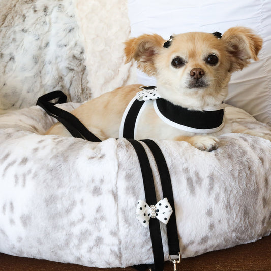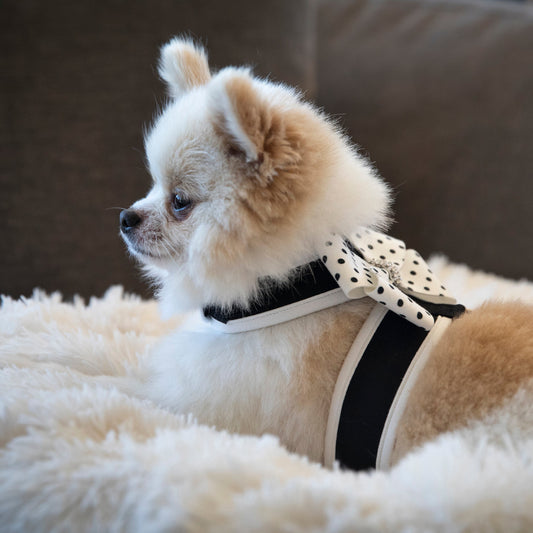Polka Dot Nouveau Bow Tinkie Harness with White Trim