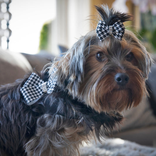 Black & White Houndstooth Nouveau Bow Step In Harness