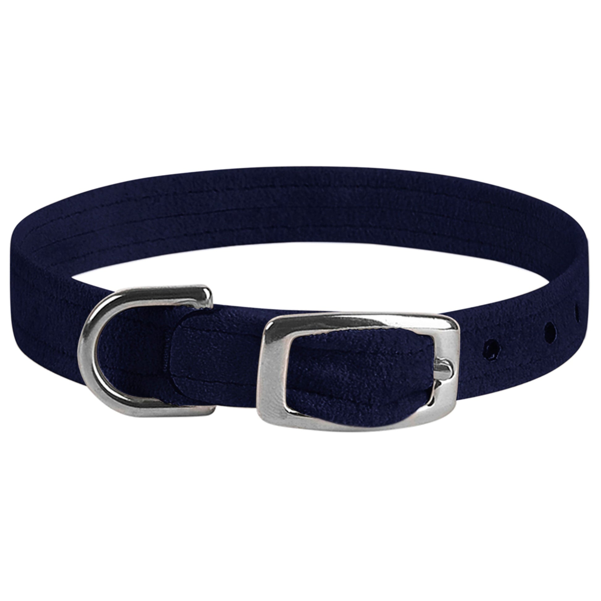 This dog collar has a premium look and feel, while being easy for you to maintain. Made from Ultrasuede® fabric with the soft texture and feel of premium suede. Ultrasuede® offers the highest grade of durability, making this collar resistant to stains and discoloration. It is even machine washable! Collar width is ½”. We recommend your dog should always be walked with a harness. Our collars are designed for ID tags, charms and for decoration, they are NOT designed for pulling dogs. Manufactured in the USA.