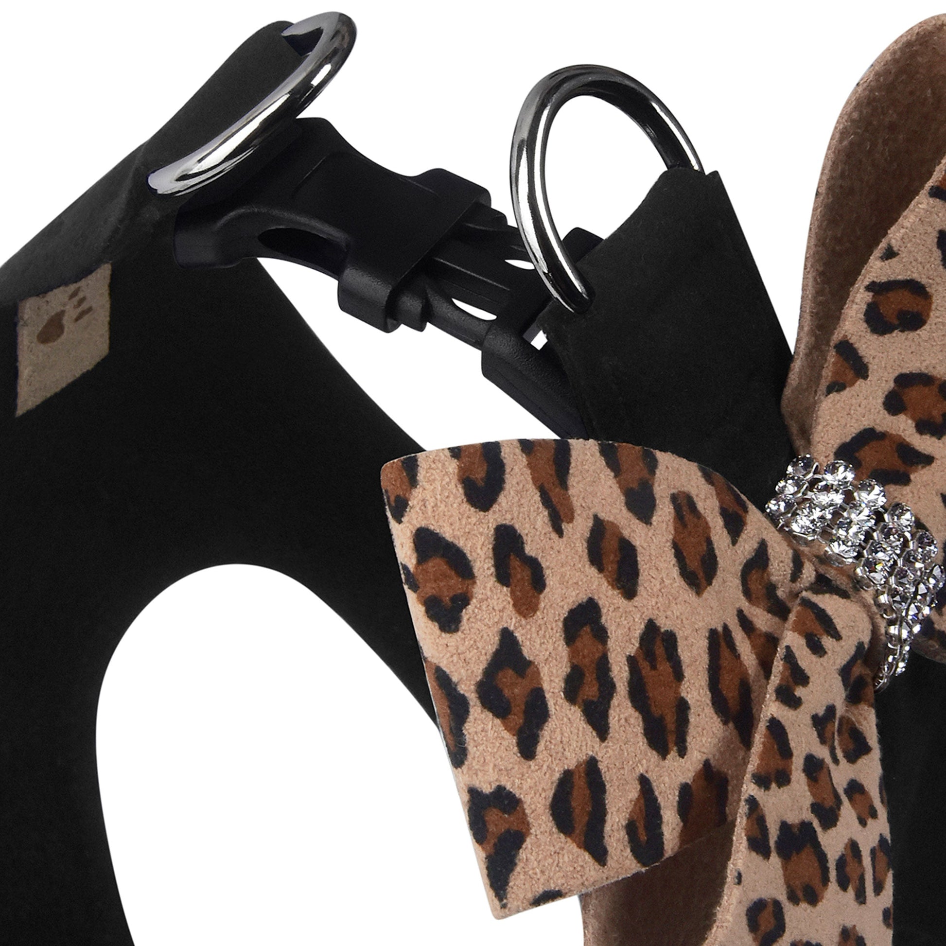 Show off your little one’s wild side with the Cheetah Nouveau Bow Step In Harness. Our Classic Black Step In Harness is adorned with a Cheetah Nouveau Bow topped with rows of Premium Giltmore Crystals. Your pup is sure to me-WOW the neighbors!